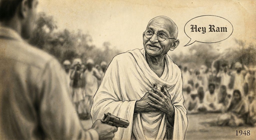 After being shot by an assassin, Gandhi’s last words were purported to be “Hey Ram” which is a greeting to God in Hindi